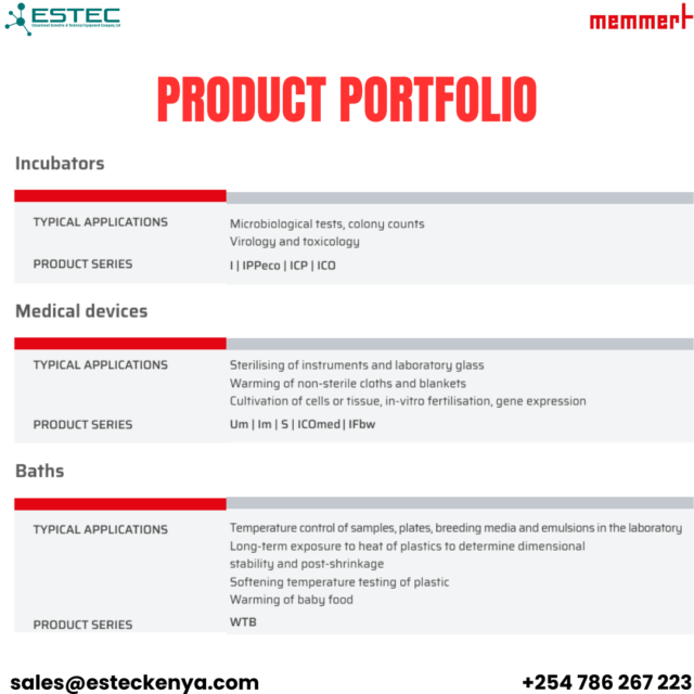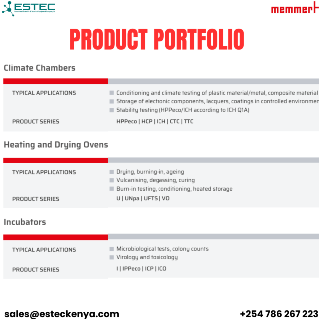 At ESTEC Limited, we are committed to providing laboratories, universities, research institutions, and industries with cutting-edge equipment that ensures precision, reliability, and efficiency. Through our partnership with Memmert GmbH + Co. KG, a global leader in temperature control and climate technology, we supply a comprehensive range of products designed to meet diverse scientific and industrial needs.